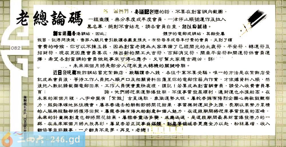 082期:六合皇金句/老总论码/萧公子/林大师/五行夺码/老总信箱截图