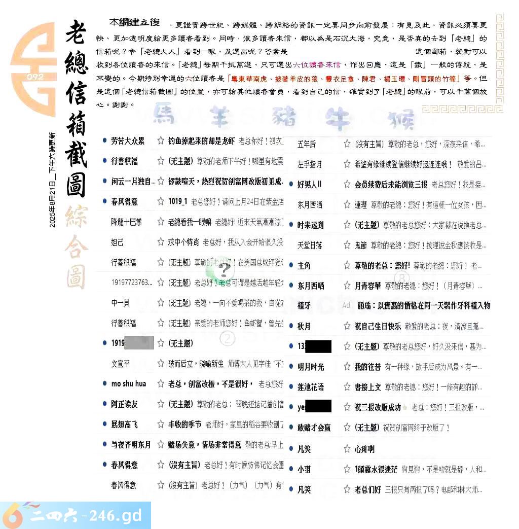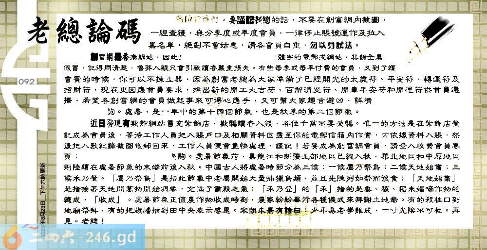 092期:六合皇金句/老总论码/萧公子/林大师/五行夺码/老总信箱截图