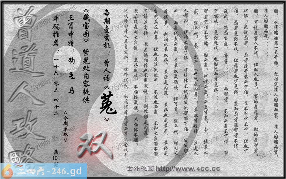 101期藏寶圖 新:碧云迢递银河深 老:蜀道如天夜雨淫 禁:蛇 禁:7尾 玄機字:《菟》