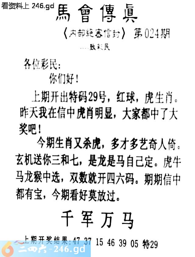 024期:首发推荐:≮馬會傳眞≯→(香港正版)