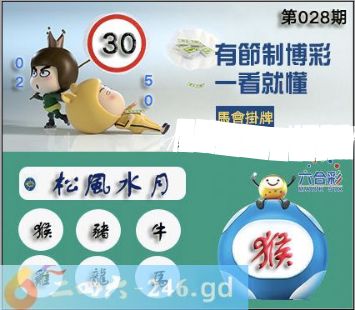 2026年028期正版彩图挂:30 爆:猴 挂牌成语:松风水月 挂牌出肖:猴猪牛鸡龙马